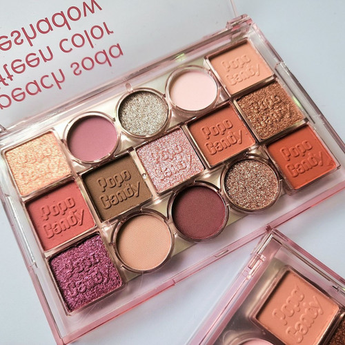 پالت سایه ۱۵رنگ اورجینال popo candy برجسته در طیف هلو رنگهای نود مناسب پاییز و زمستان