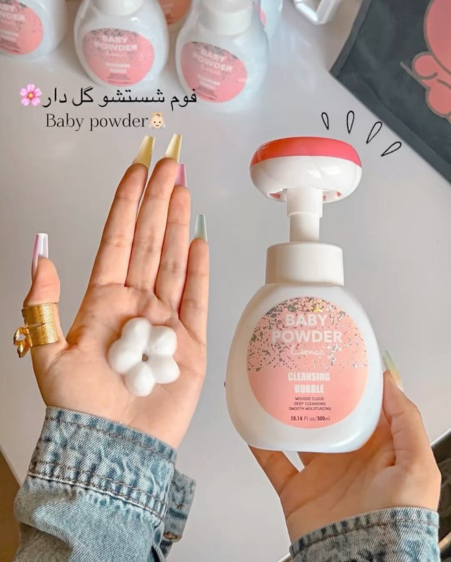 فوم شستشو پینترستی طرح گل 🌸با رایحه پودر بچه خوشبو در حجم ۳۰۰میل بزرگ