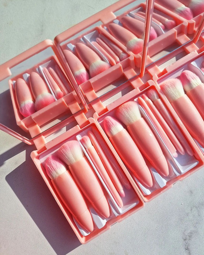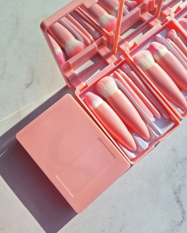 ست براش مینی باکس دار ۵عددی همراه با آینه مخصوص سفر ✈️و داخل کیف و هدیه 🎁