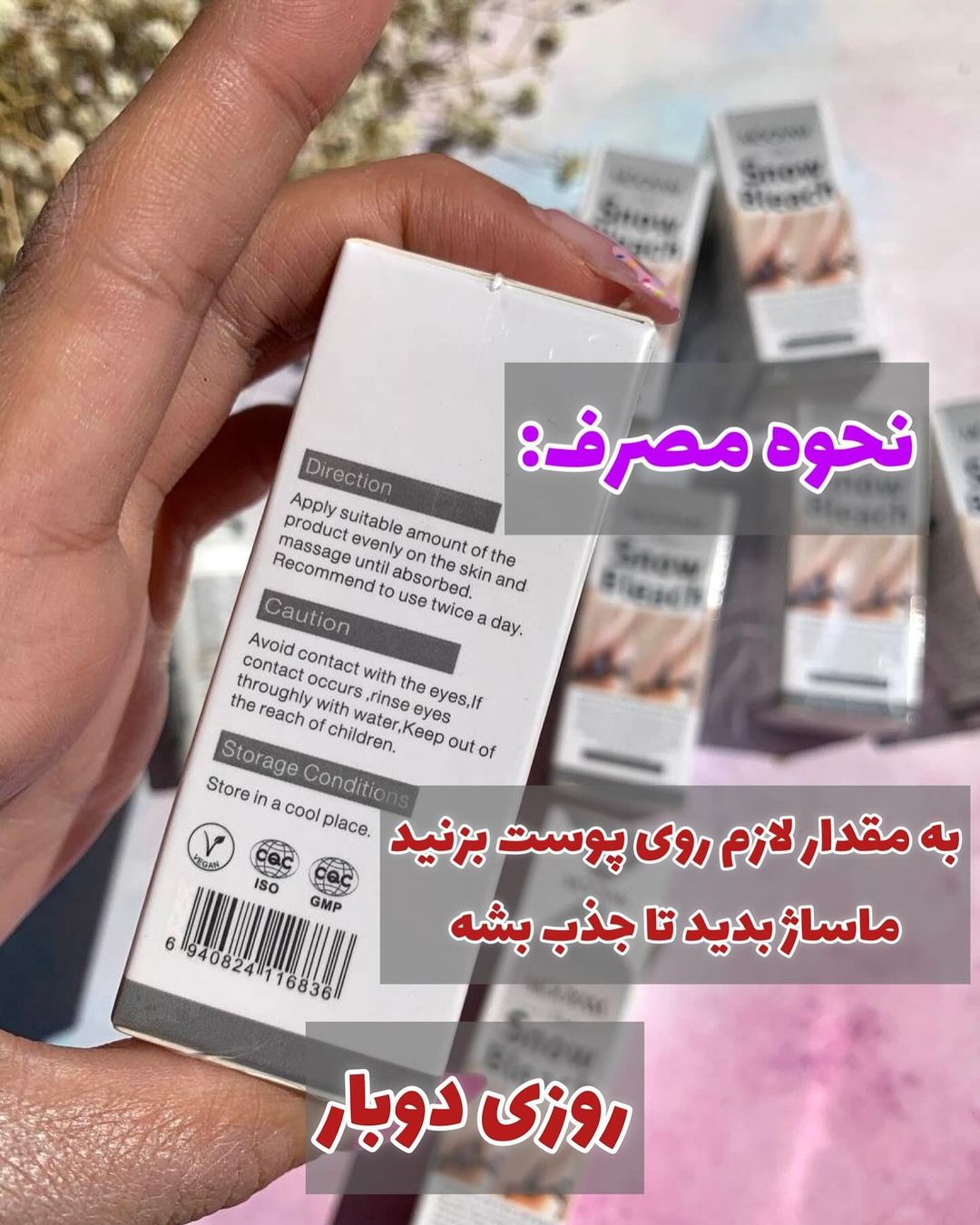 • این محصول مانند برف هر قسمتی از بدن شما را سفید می کند.