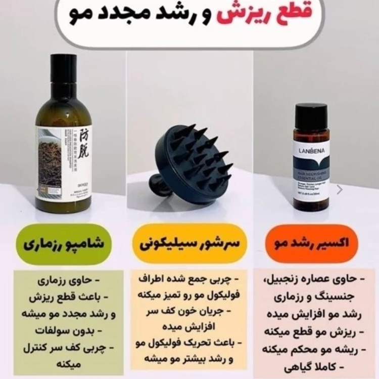 پک اقتصادی شامپو+سرشور+قطره رویش مجدد
