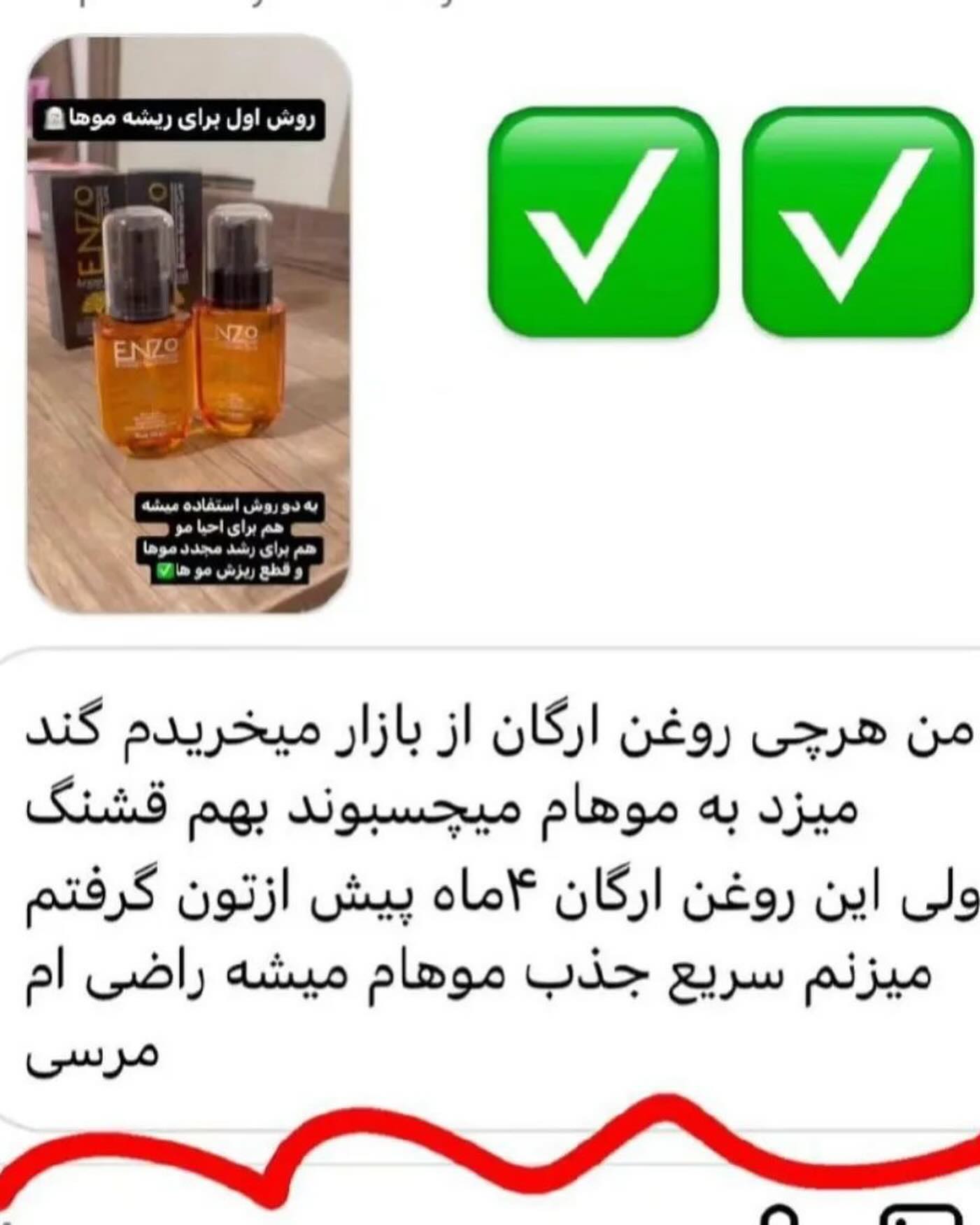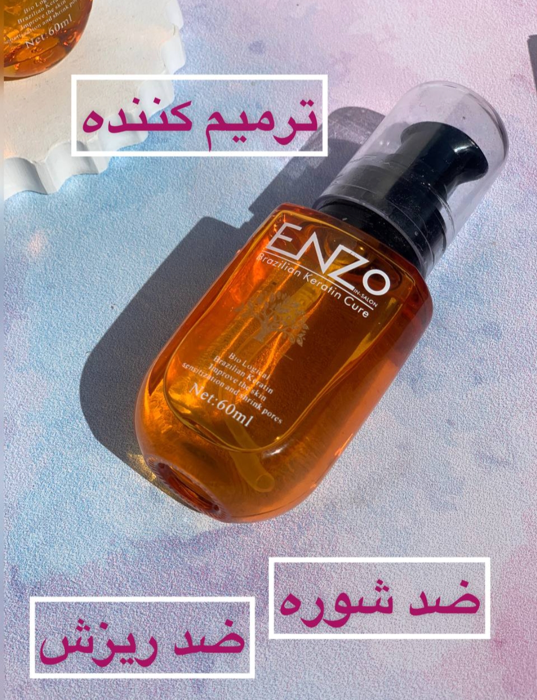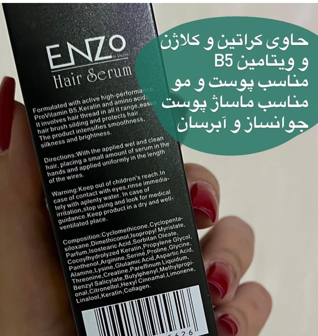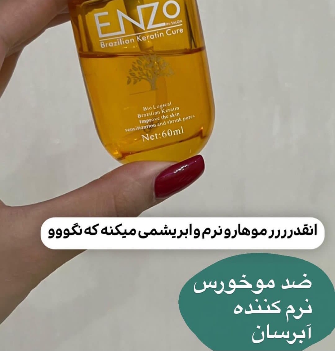سرم آرگان اصلی برزیلی برند اورجینال Enzo ضد موخوره و نرم کننده و آبرسان ساقه مو با حجم ۶۰ میل