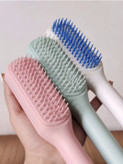 تازه دندانه های منعطف و آنتی باکتریالی داره که هم خیلی راحت موها رو شونه میکنه و گره موها رو باز میکنه هم باعث موخوره نمیشه🙂↕️