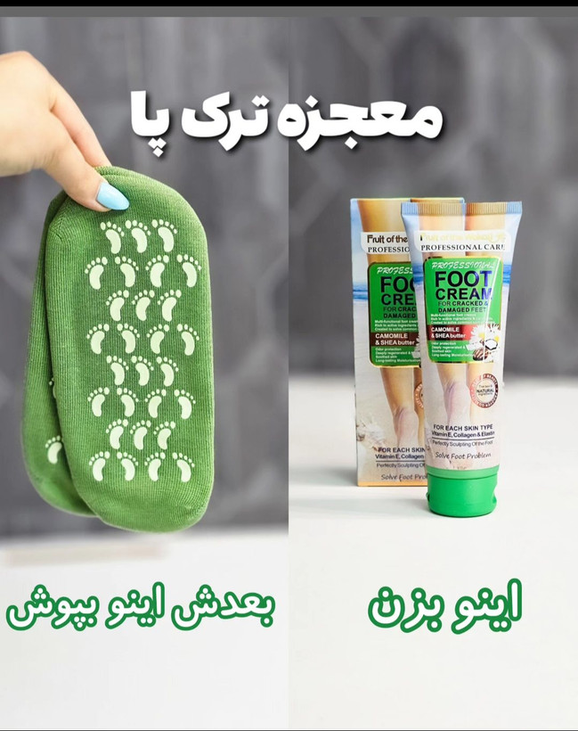 پک اقتصادی جوراب سیلیکونی اورجینال و کرم ترک پا بزرگ ۱۳۰میل برند وکا.لی برای درمان خشکی و ترک پا