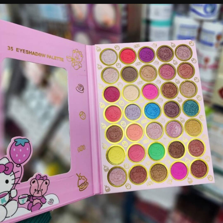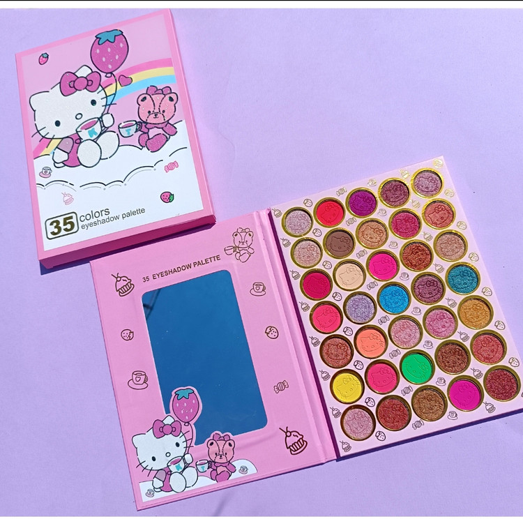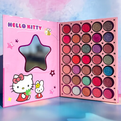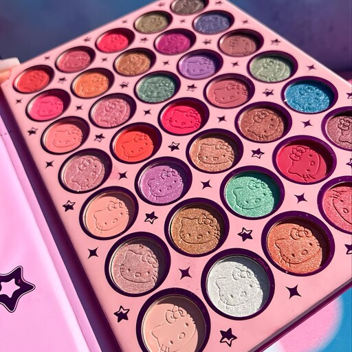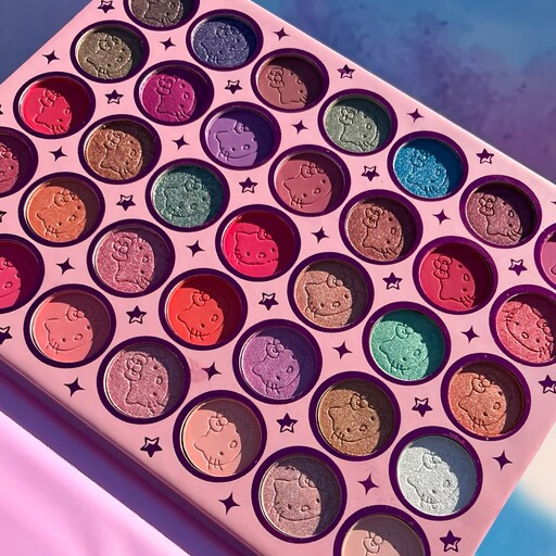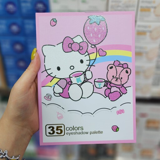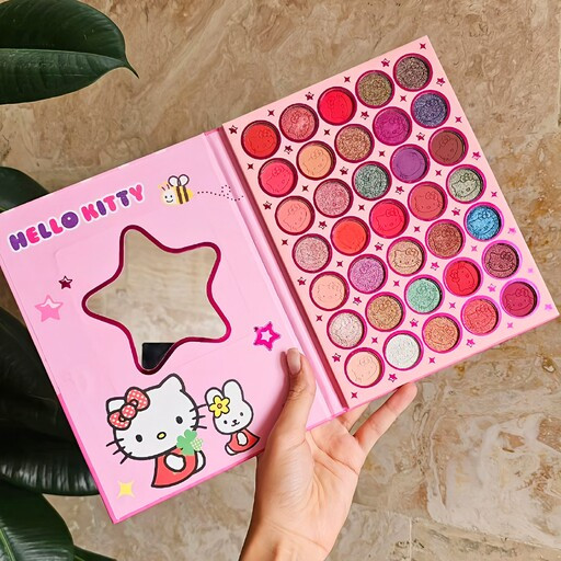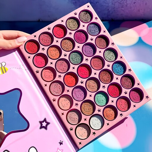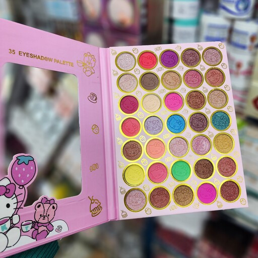 پالت سایه هلو کیتی ۳۵ رنگ سایز بزرگ فوق کیوت عروسکی و اورجینال در ۲مدل رنگ بندی صورتی روشن و صورتی پررنگ