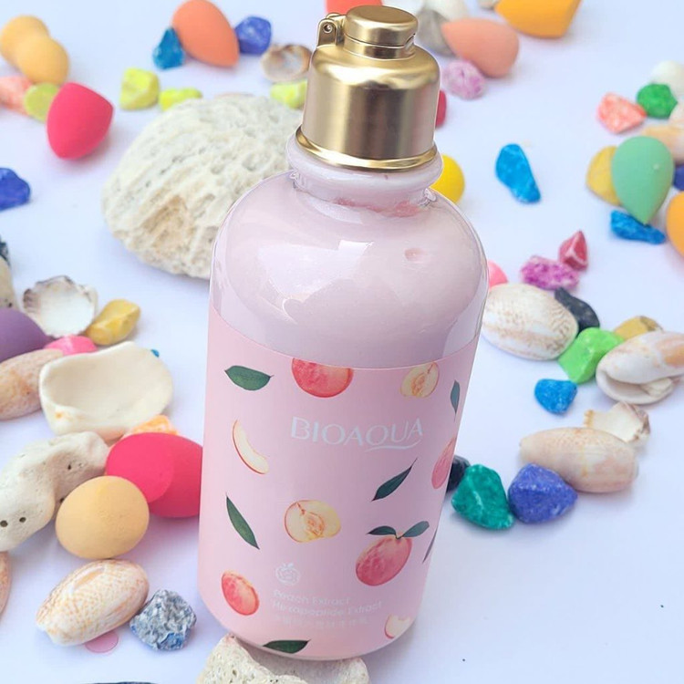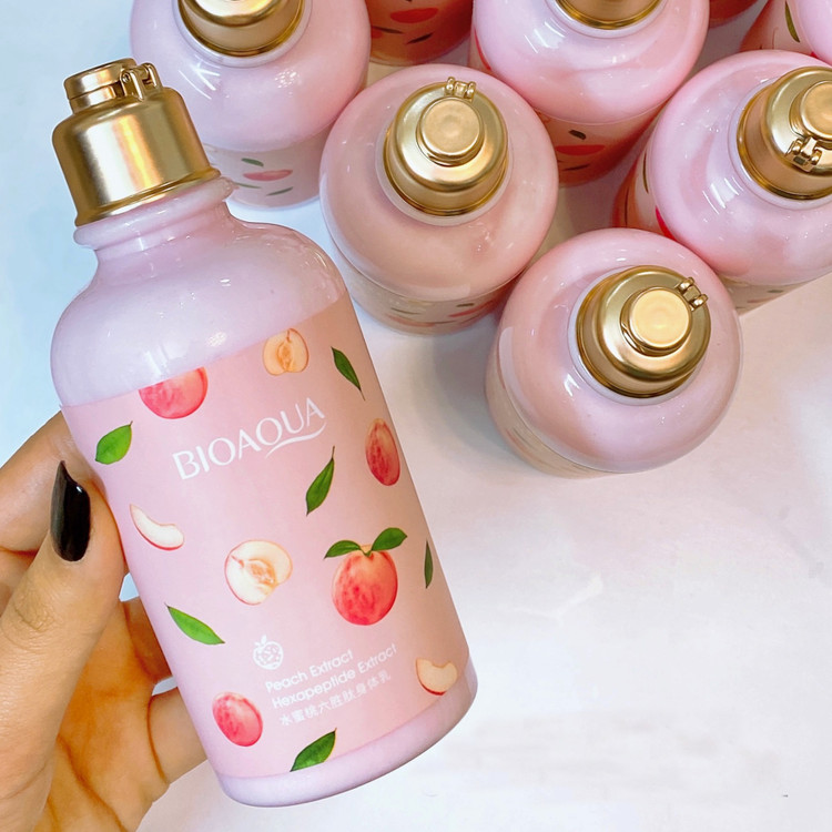 لوسیون بدن هلو با شاین ریز جذاب حاوی هگزاپپتاید و عصاره هلو ضد چروک‌ و نرم کننده و سفید کننده و شفاف کننده بدن با حجم ۲۵۰میل بزرگ