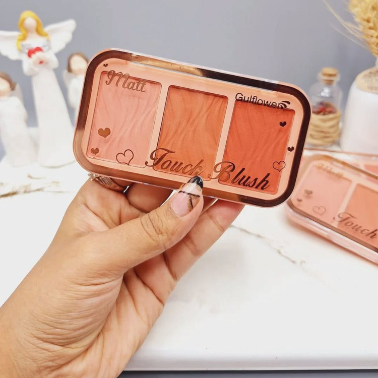 پالت رژگونه اقتصادی سه رنگ از برندgulflower در رنگهای نود و صورتی