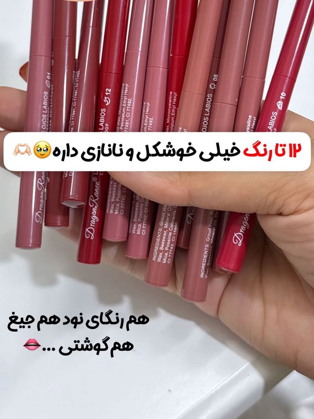 مداد لب پیچی دراگون با 12رنگ خاص 🫧🌸