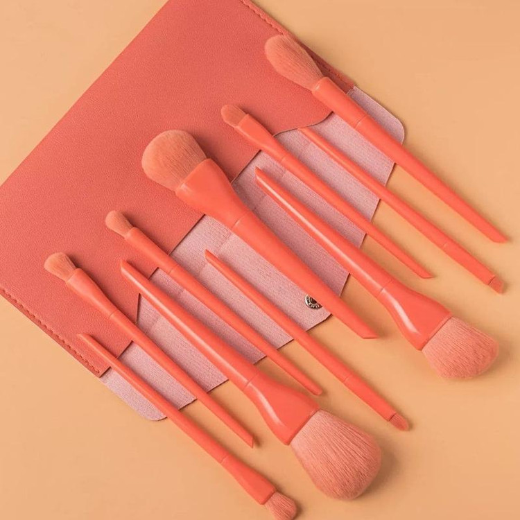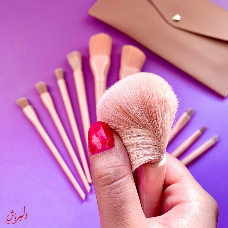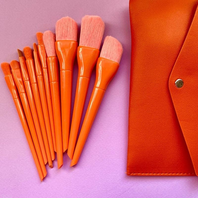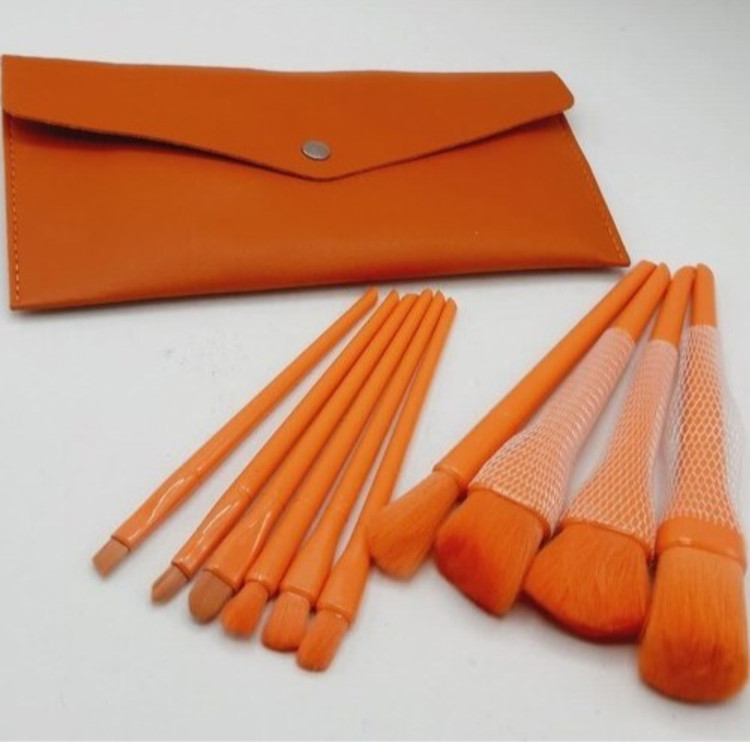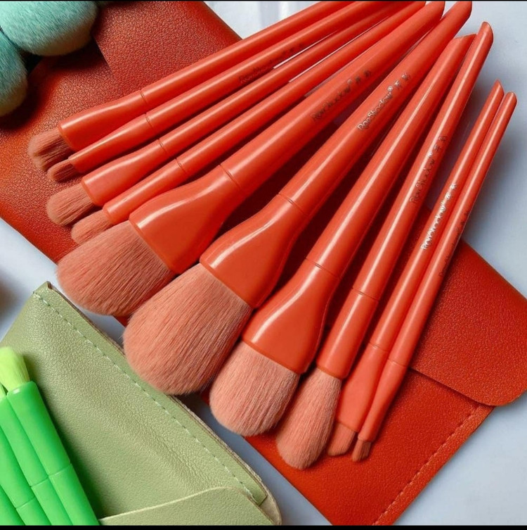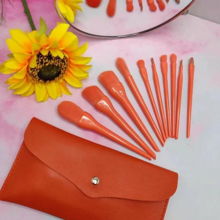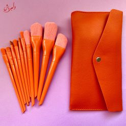ست براش پاستیلی نارنجی ۱۰ تیکه سایز بزرگ با تراکم خیلی زیاد به همراه کیف چرمی با کیفیت تضمینی