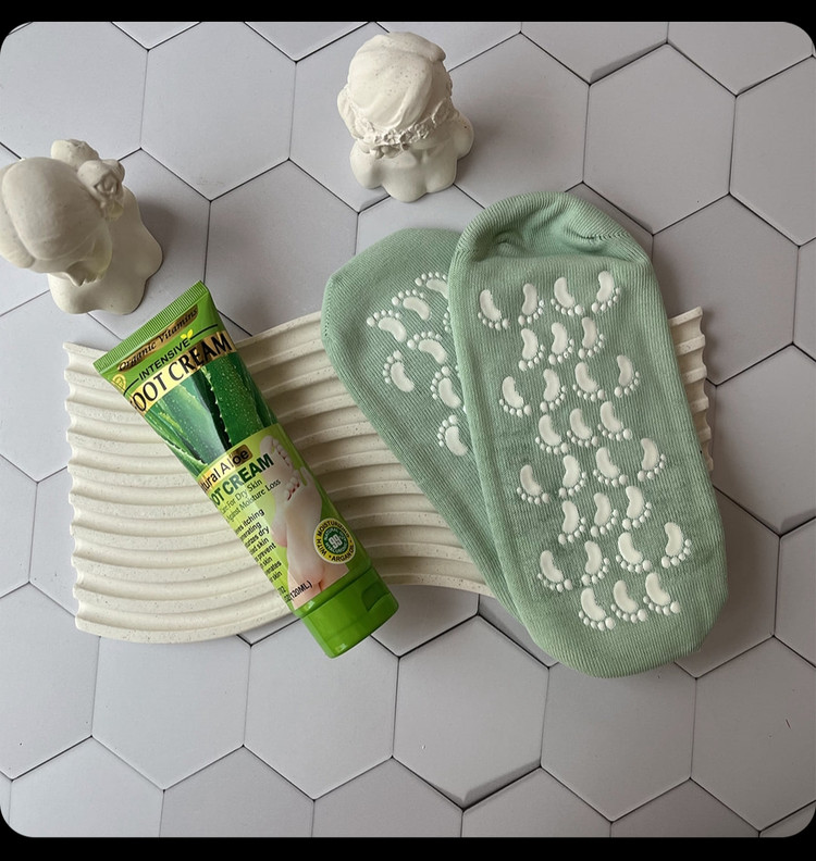 پک اقتصادی جوراب سیلیکونی و کرم ترک پا وکالی