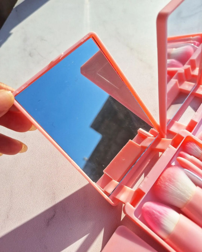 ست براش مینی باکس دار ۵عددی همراه با آینه مخصوص سفر ✈️و داخل کیف و هدیه 🎁