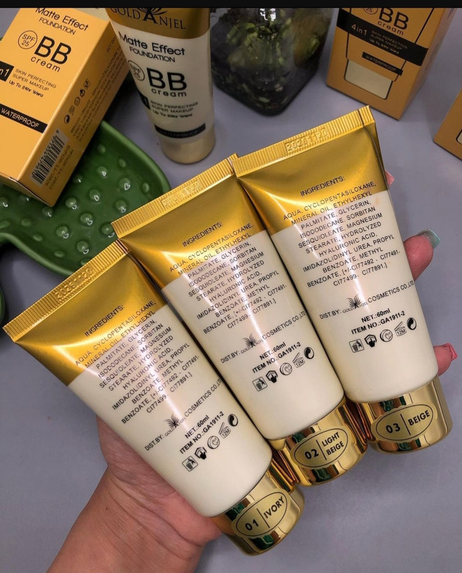 BB کرم ۴ کاره گلد آنجل فول کاور با پوشش بالا و مات /حاوی ضد آفتاب و مرطوب کننده و کرم پودرو فیکساتور