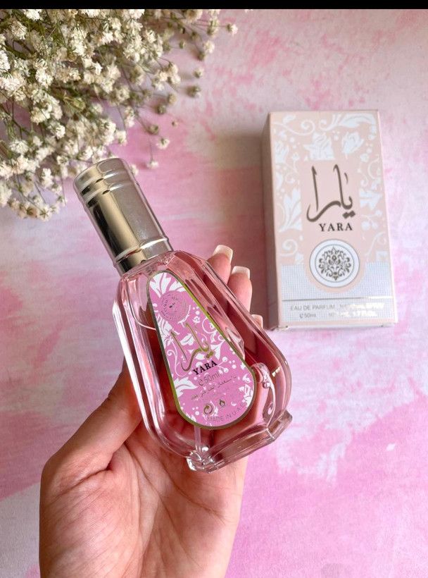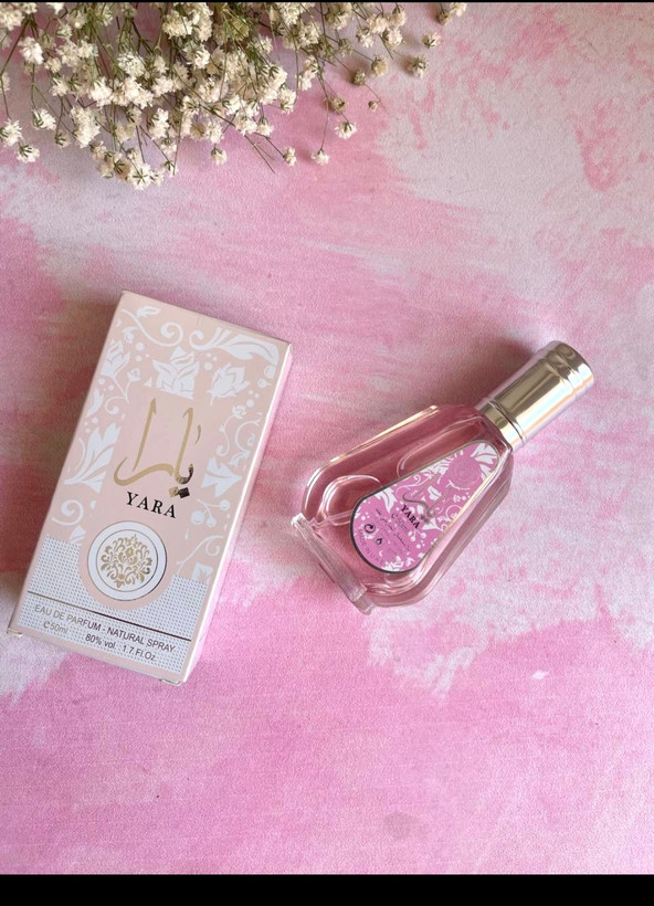 ادکلن یارا ۵۰ میل اماراتی شرکت الزعفران با رایحه دخترونه توت فرنگی و مارشمالو ترند تیک تاک و اینستا گرام