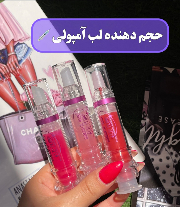 رژلب حجم دهنده لب مدل آمپولی از برند romantic rain با حجم دهندگی و کیفیت عالی با جعبه اصلی در ۶رنگ کاربردی