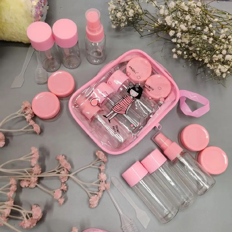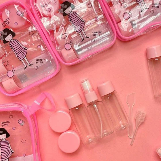 ست مسافرتی آرایشی ۷ تکه دختر کیوت به همراه کیف طلقی