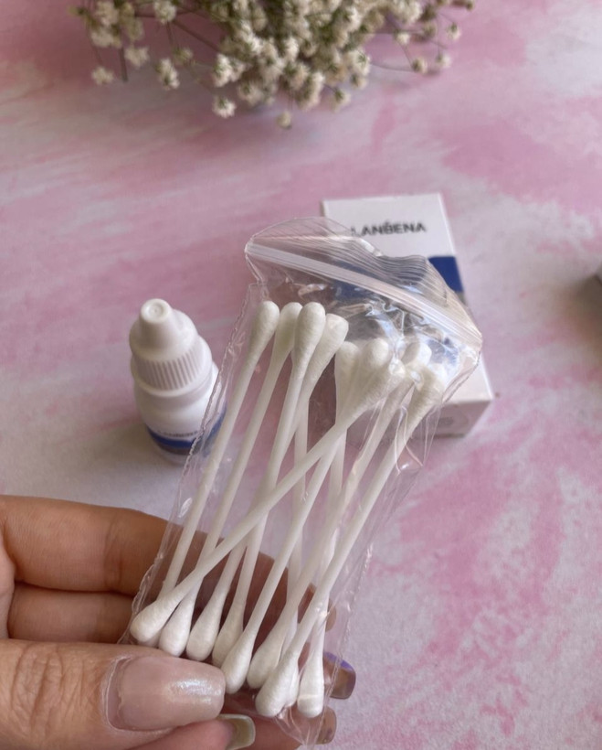 🔵حاوی 10 عدد گوش پاککن برای زدن محلول به دندان
