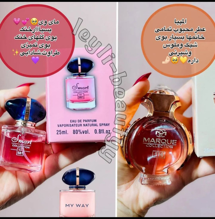 رایحه هاشون بی نظیره و رضایت ۱۰۰ درصدی مشتری هارو داشته و ماندگاریشون ۷/۸ ساعته و گاها ممکنه روی لباسی که میزنین حتی بعد گذشت چند روز ته مونده رایحش روی لباستون باشه و خط بو و پخش بوی بی نظیری هم دارن✅