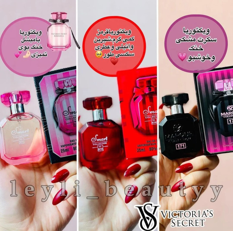 یعنی به طور مثال ادکلن ۱۰۰ میل ویکتوریاسکرت که توسط خوده شرکت درست شده ٫ توی شرکت برند مارکوییس یا اسمارت یا ... در سایز ۲۵ میل ساخته شده با ۹۶٪ تشابه رایحه و همون پکیج و بسته بندی به دست شما میرسه