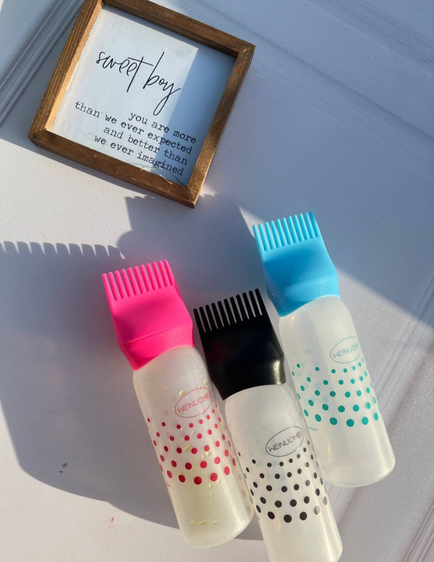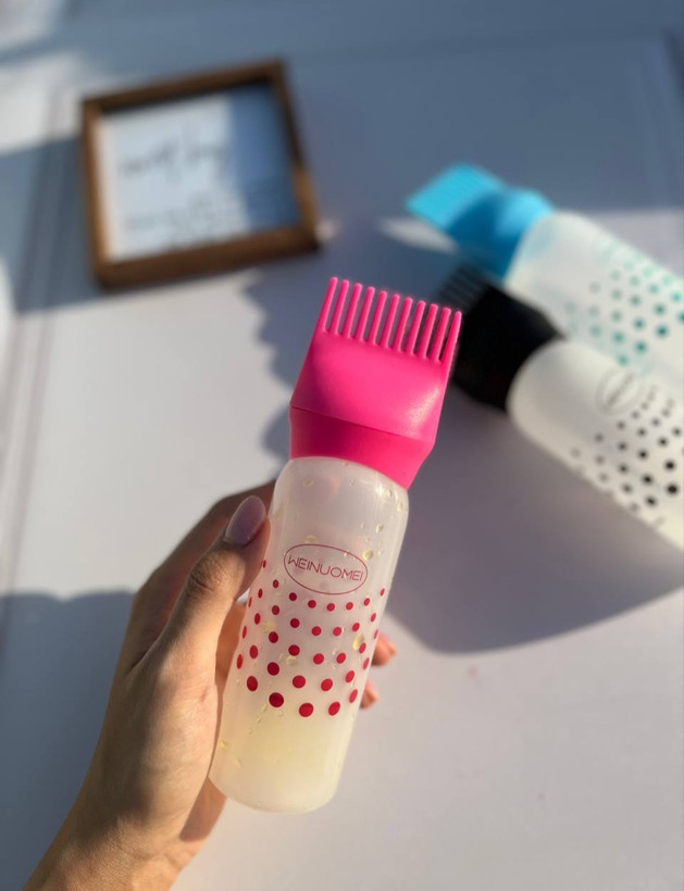 اپلیکاتور شانهای: شانهی بطری با منافذ ریز بهگونهای طراحی شده که هنگام شانهکشیدن، روغن را بهطور یکنواخت و دقیق به کف سر منتقل میکند. دیگر نیازی به استفاده از دستهایتان نیست! 💆♀️💧