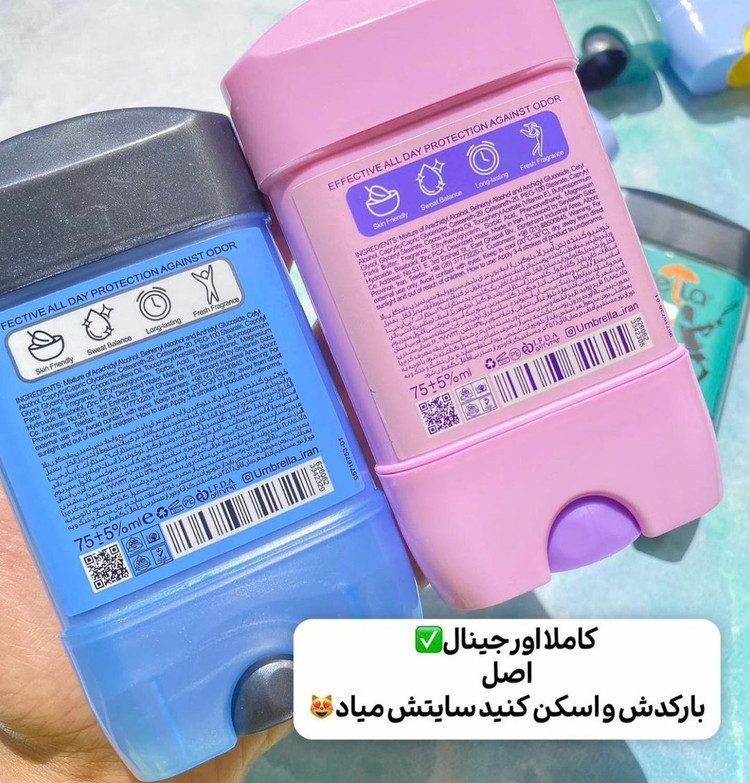 مام استیک ژلی ضد تعریق و فاقد الکل آمبرلا مناسب خانم ها و آقایان در رایحه های مختلف و خوشبو و ماندگاری ۲۴ساعته با حجم بزرگ ۷۵میل/سری جدید کیفیت عالی