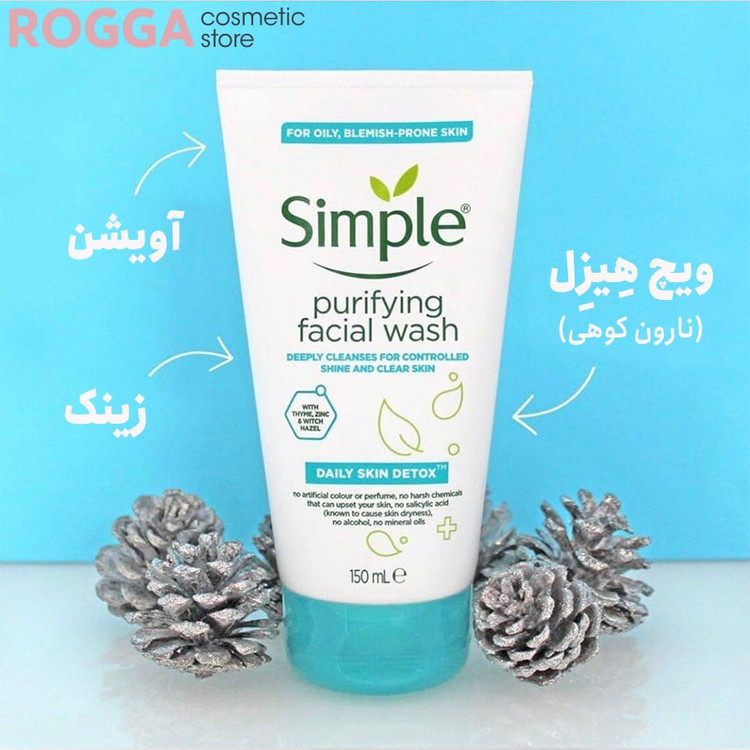 ژل شستشوی سیمپل حاوی زینک، آویشن، عصاره فندق جادوگر و نیاسینامید است. هر کدام از اینمواد خواص فوق العاده ای به این شوینده بخشیده اند.
