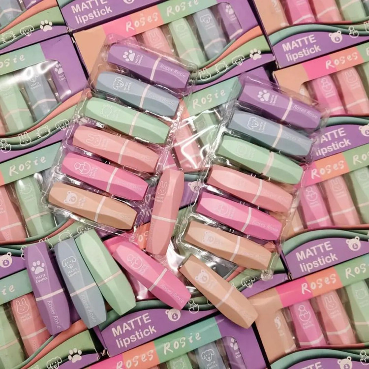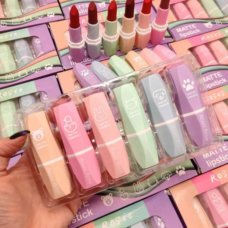 پک رژ جامد ۶عددی عروسکی سایز بزرگ برند رزرزی با کیفیت عالی و تضمینی مناسب هدیه و کادویی /پک رژلب اقتصادی /پک رژ کادویی