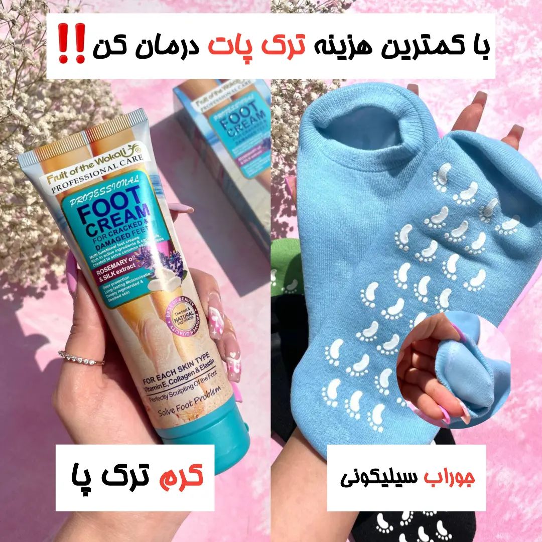 پک اقتصادی جوراب سیلیکونی اورجینال و کرم ترک پا بزرگ ۱۳۰میل برند وکا.لی برای درمان خشکی و ترک پا