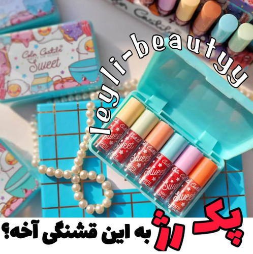 پک رژ مایع ۶عددی آبنباتی فوق کیوت از برند کالرکستل در رنگهای گوشتی و قرمز با کیفیت تضمینی مناسب هدیه و کادویی