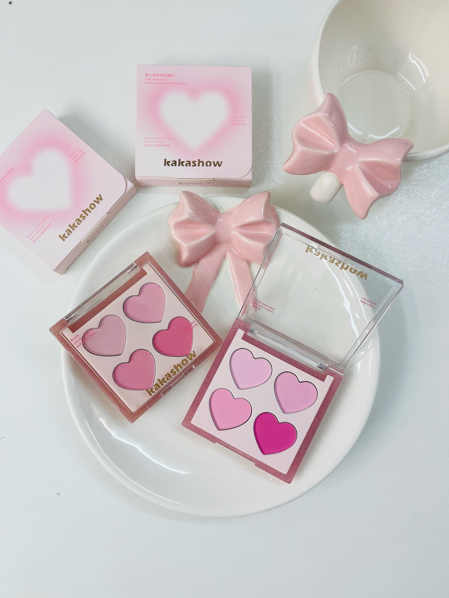 پالت رژگونه و سایه قلبی پینترستی کره ای از برند اورجینال kakashow وارداتی در ۲سری رنگ بندی دخترونه مناسب هدیه 🎁