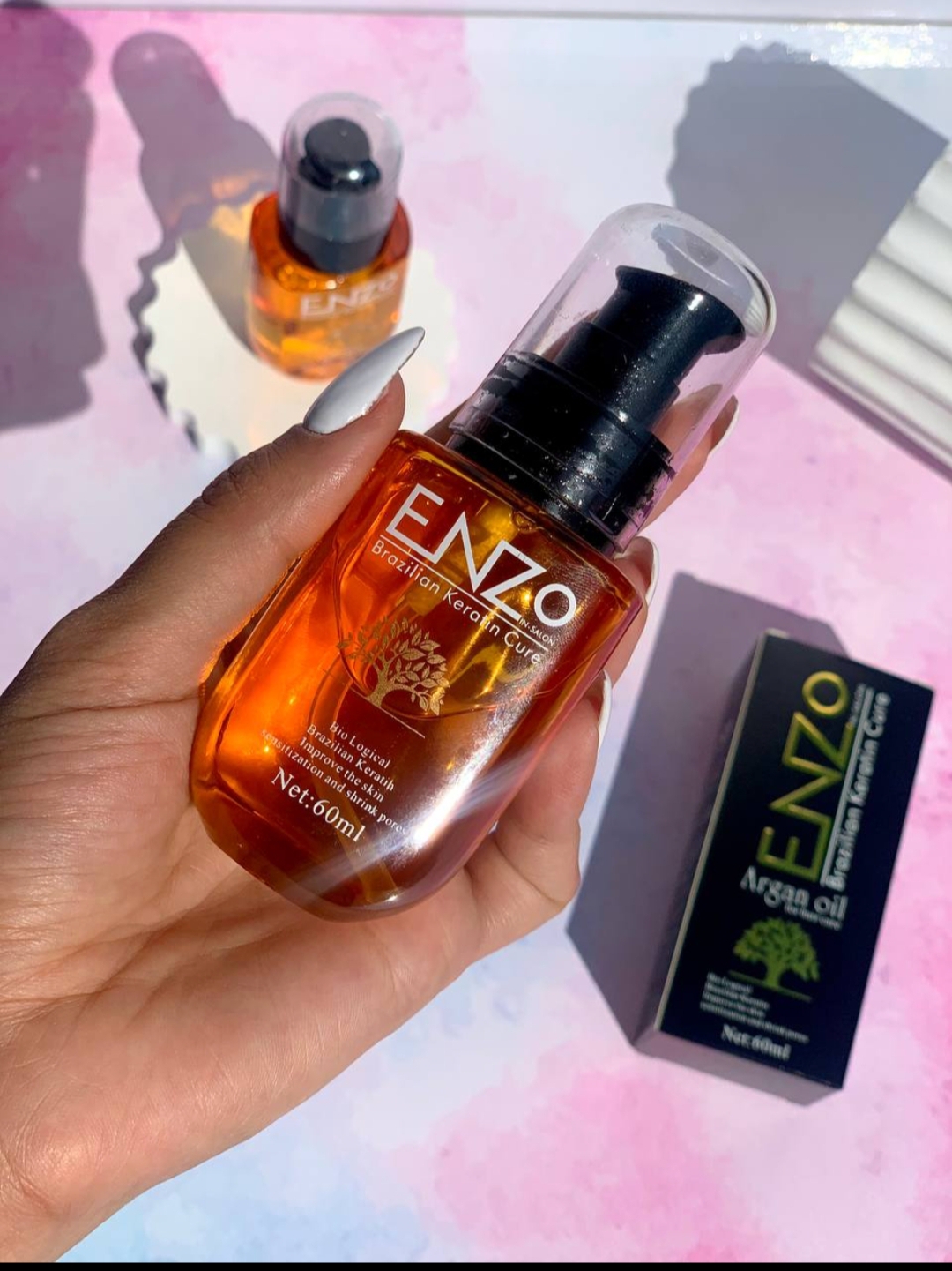 سرم آرگان اصلی برزیلی برند اورجینال Enzo ضد موخوره و نرم کننده و آبرسان ساقه مو با حجم ۶۰ میل