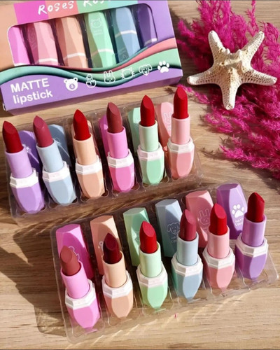 پک رژ جامد ۶عددی عروسکی سایز بزرگ برند رزرزی با کیفیت عالی و تضمینی مناسب هدیه و کادویی /پک رژلب اقتصادی /پک رژ کادویی