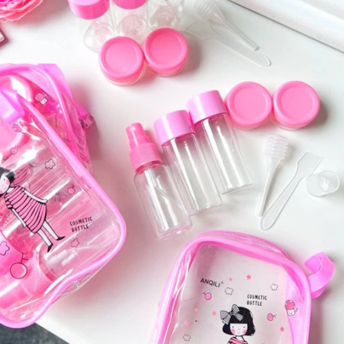 ست مسافرتی آرایشی ۷ تکه دختر کیوت به همراه کیف طلقی